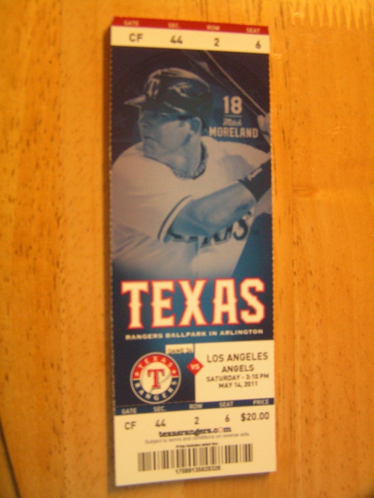 - 2011 Texas Rangers Full Unused Ticket Stub Vs Los Angeles Angels 5/14