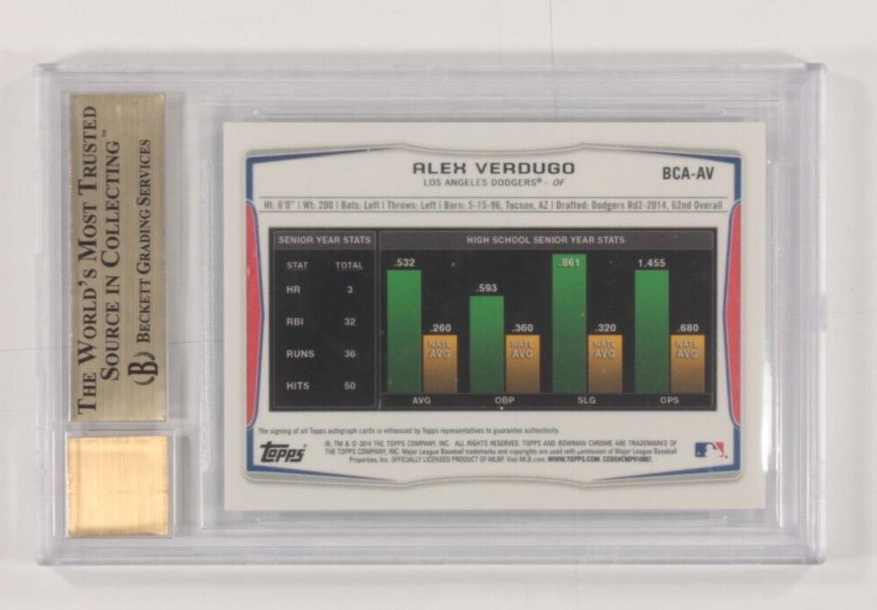 - 2014 Bowman Chrome Draft Autograph Alex Verdugo Refractors BGS 9.5 Gem #BCA-AV