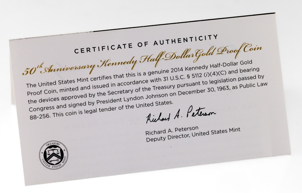 - 2014-W 50C 3/4 Oz. Pièce D'Un Demi Dollar En Or Kennedy Proof Avec OGP Gem