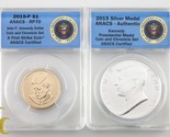 - 2015 Kennedy Coin & Chronicle Kit: Dollar & Silver Medal Anacs Graded- show o...