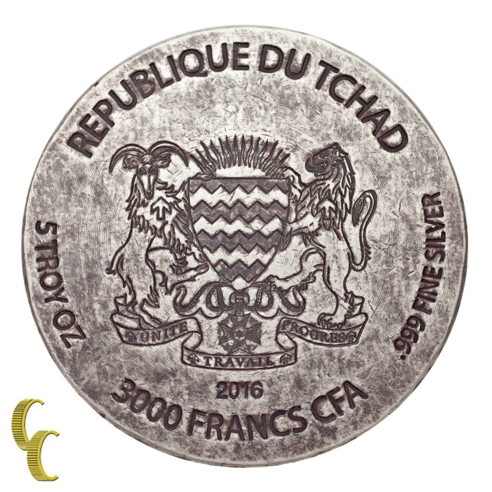 2016 5oz Silver Republic of Chad Egyptian Relic Series King Tut Coin 3000 Francs