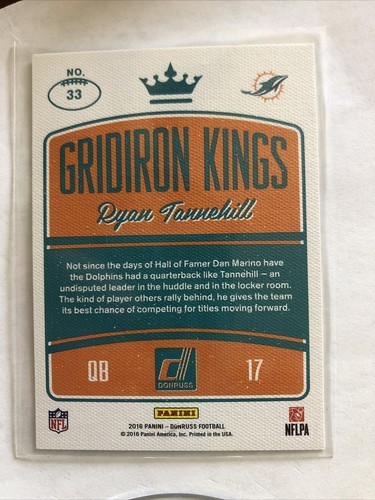- 2016 Donruss Gridiron Kings Blue /250 Ryan Tannehill #33 studio series Dolphins