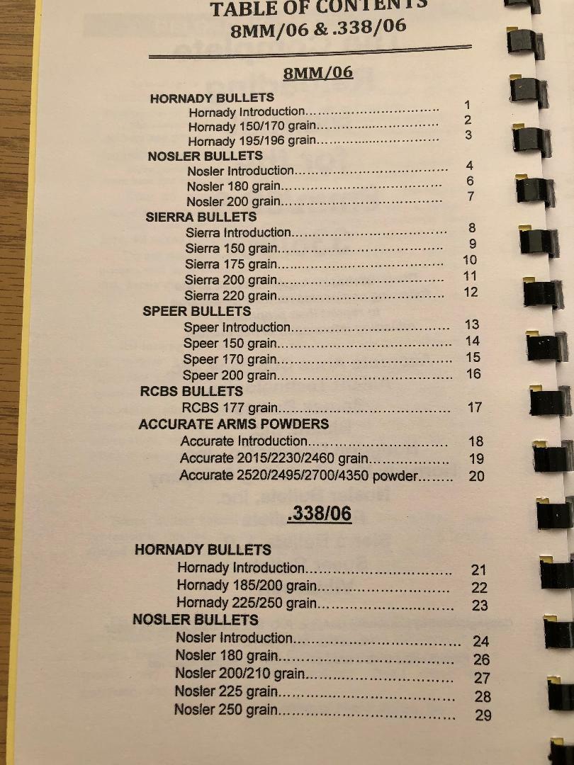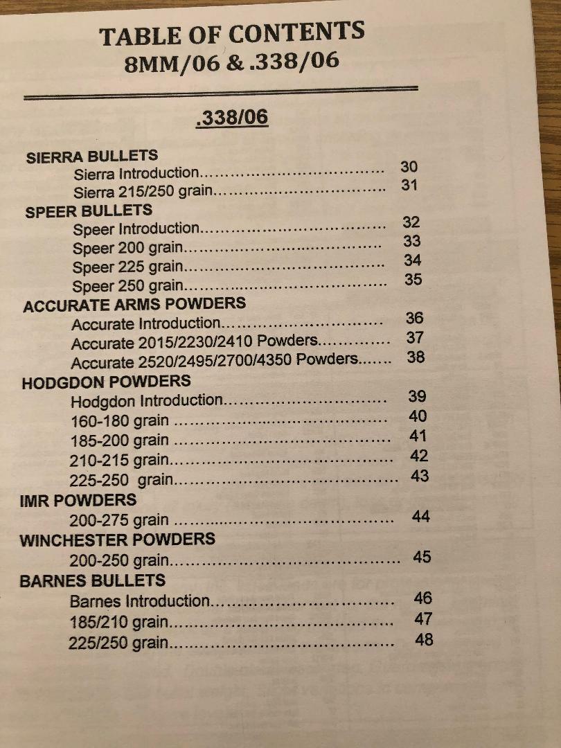 2016 The complete reloading manual for the 8mm/06 338/06, latest edition, new old stock, 52 pages featuring 1307 loads , 59 bullet designs and 43,different powders. Data in this manual is comprosed of