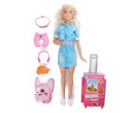 - 2018 Barbie Travel Themed Doll With Pink Suitcase Backpack Neck Pillow FWV25