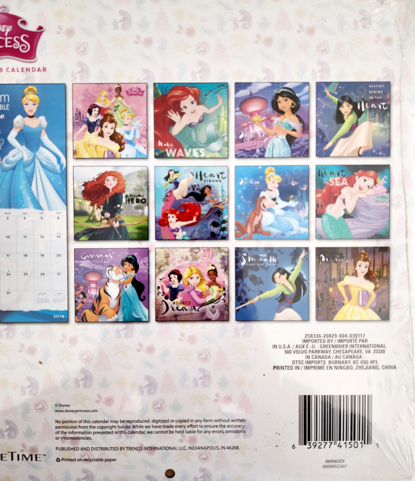 2018 Disney Princess 12 Month Calendar Sealed Brand New 10" x 10" 2 DWQQ17