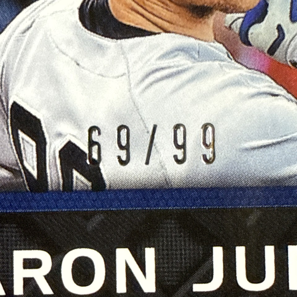 - 2018 Panini Chronicles Prizm Aaron Judge Purple Mojo #69/99 YANKEES