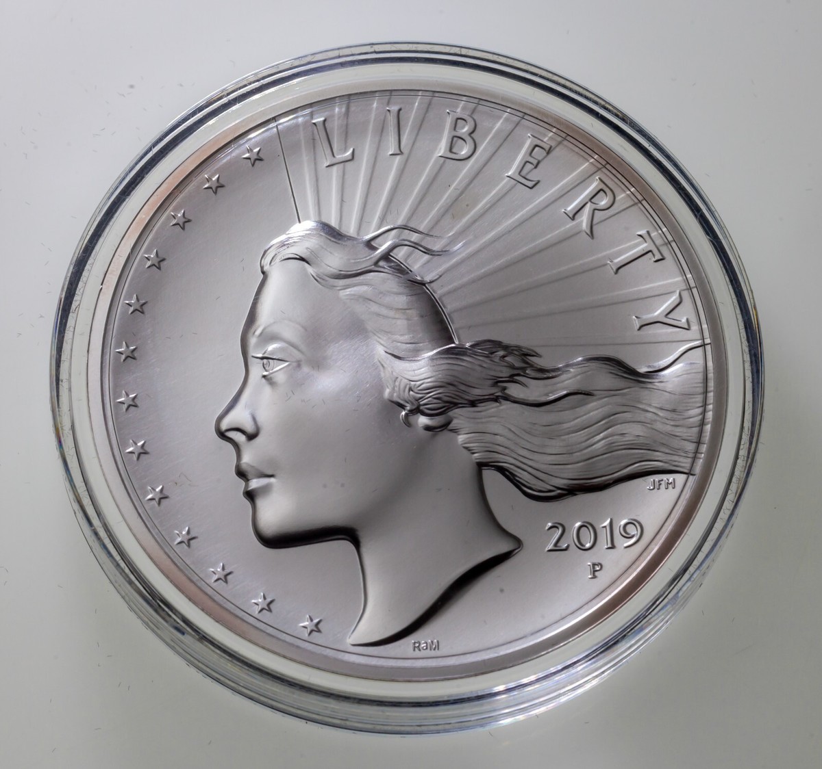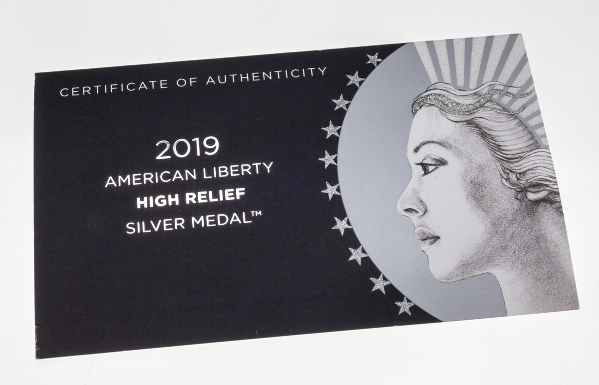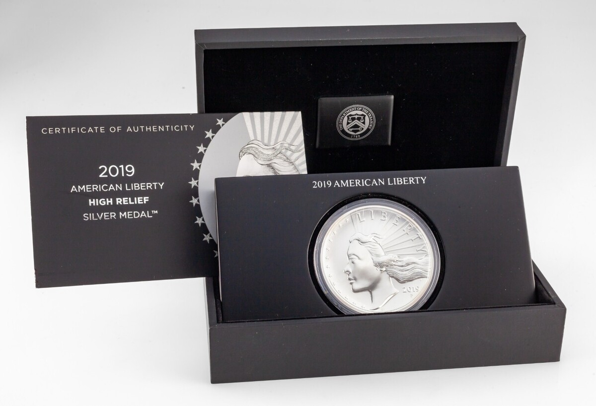 2019 American Liberty High Relief 2,5 oz Silbermedaille mit OGP Matte Uncirculated