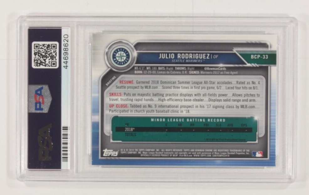 2019 Bowman Mega Box Julio Rodriguez Chrome PSA 10 Gems MT Grade #33- show or...