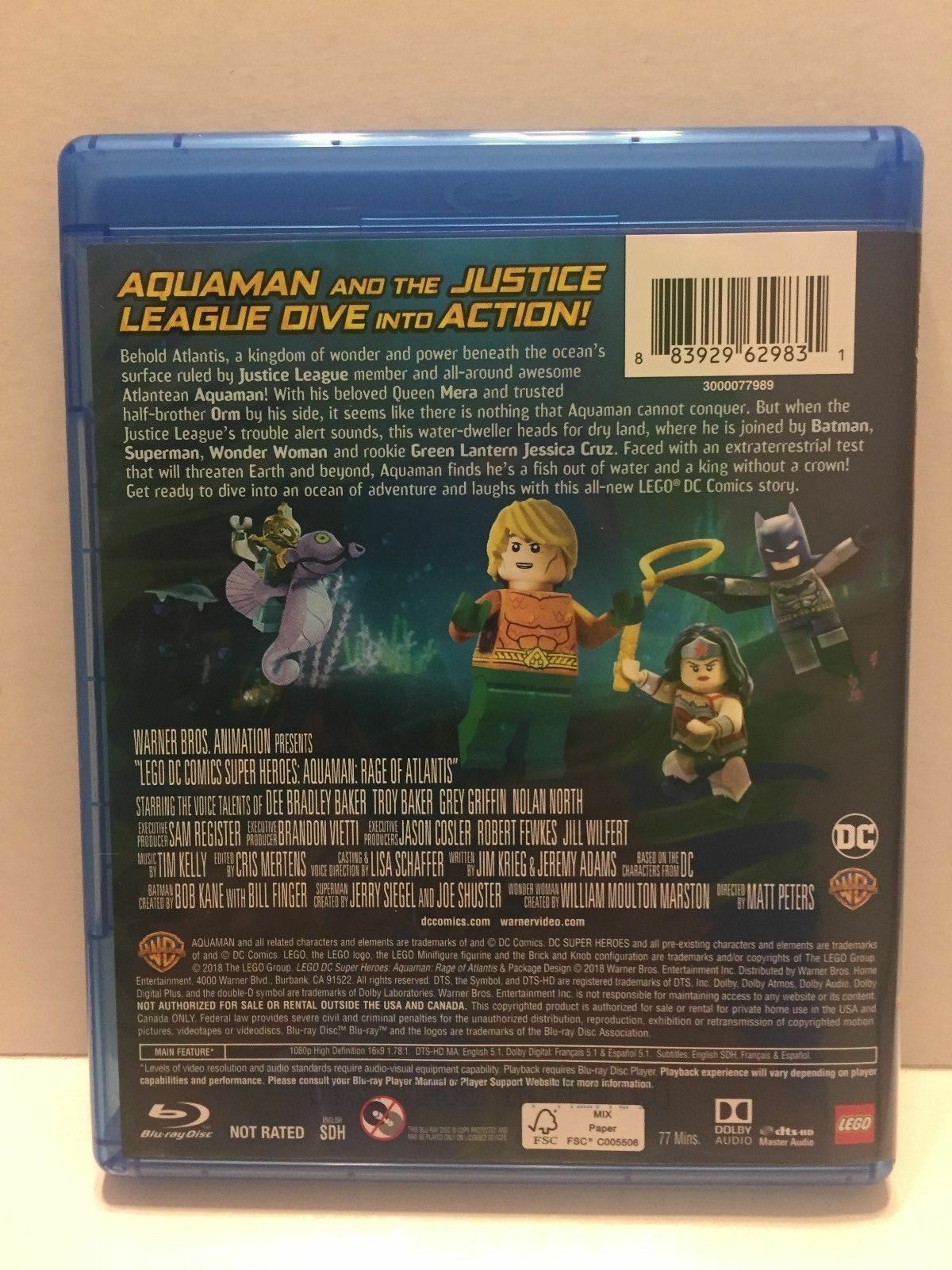 2019 DC Comics Aquaman Rage of Atlantis Animated Movie Blu-Ray Disc Only. Opened from Combo pack. New, clean and never played. In original container but just he Blu-Ray disc and no DVD or digital download.. Another great movie in the Lego Animated Movie franchise. New clean disc, never played. Add this to your collection.