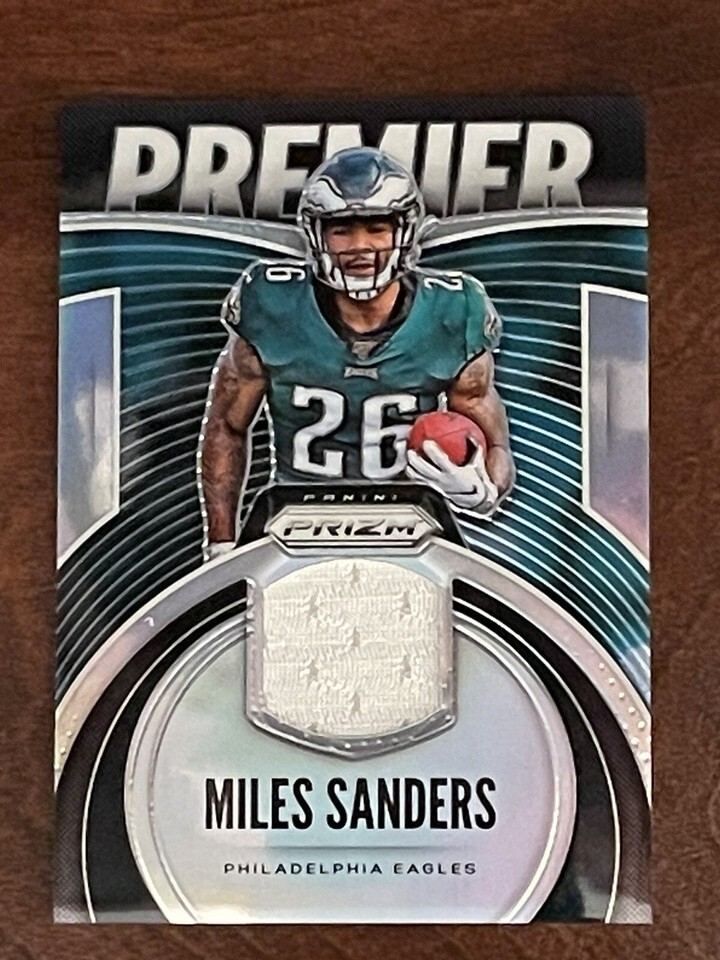 - 2019 Panini Prizm PJ-MSA Miles Sanders Premier Jerseys Rookie Patch Silver Prizm