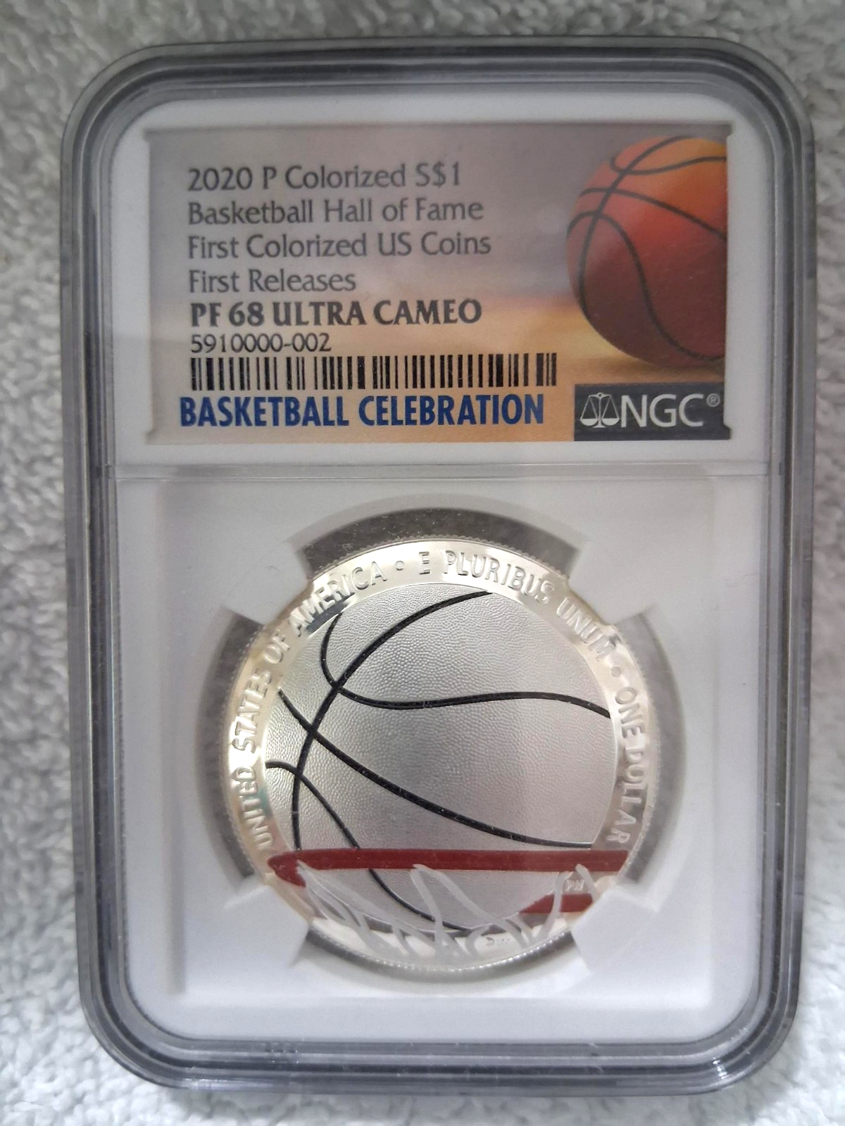 - 2020-P BASKETBALL HALL FAME $1 COLORIZED SILVER DOLLAR COIN NGC PF69 UC FDOI