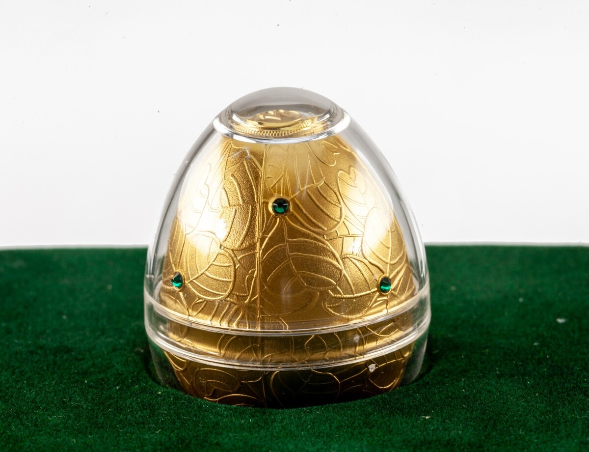 Set Includes 1 7oz. 3D Gold Plated and crystal accented Clover Leaf Egg