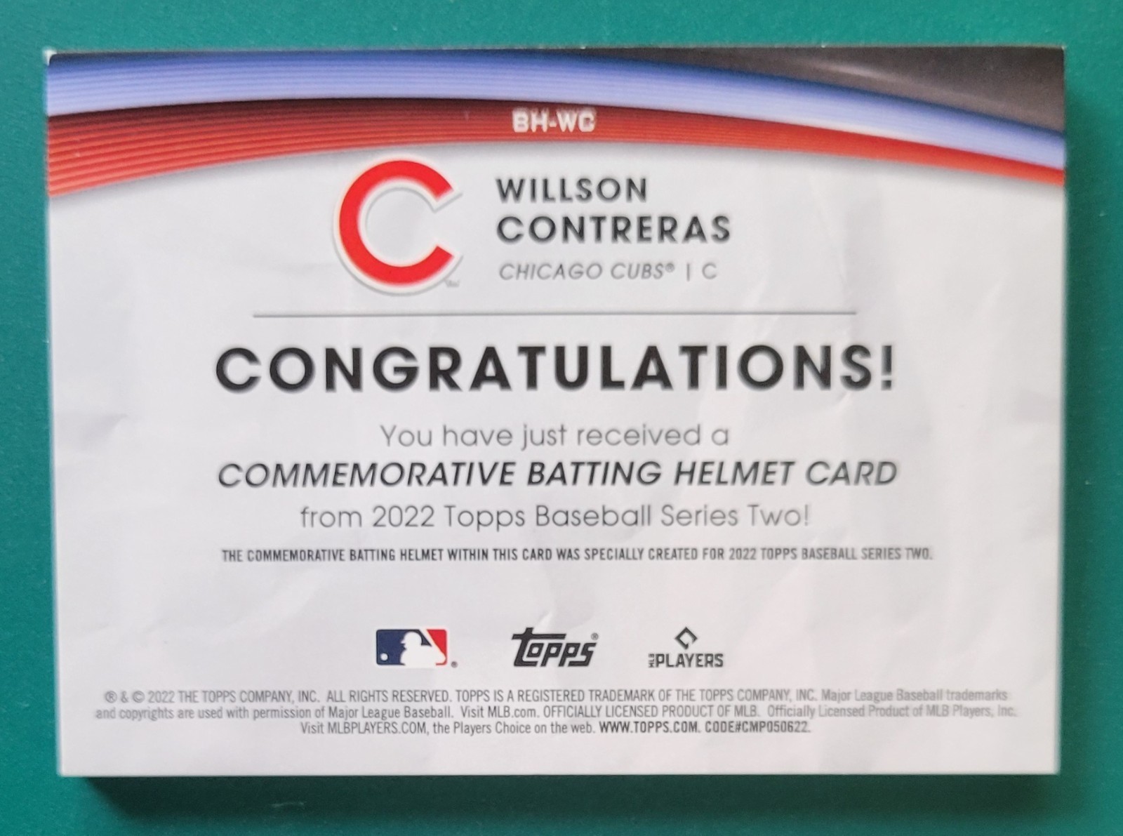 2022 Topps Series 2 Wilson Contreras Commemorative Batting Helmet Relic # BH-WC. See pics.