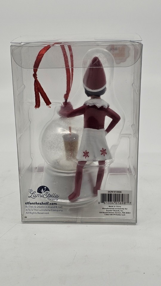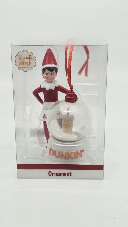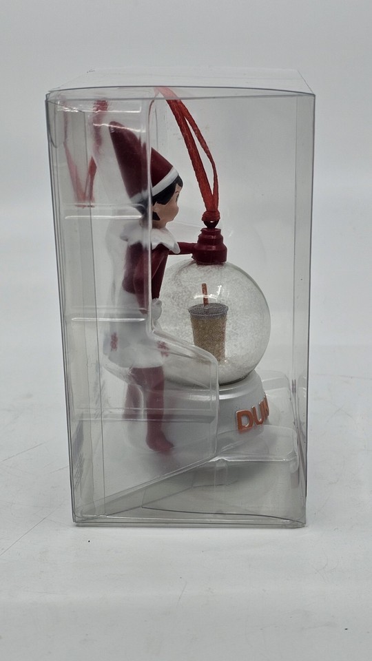 - 2023 Dunkin Donuts Ltd. Elf On The Shelf Girl Snow Globe Iced Coffee Ornament
