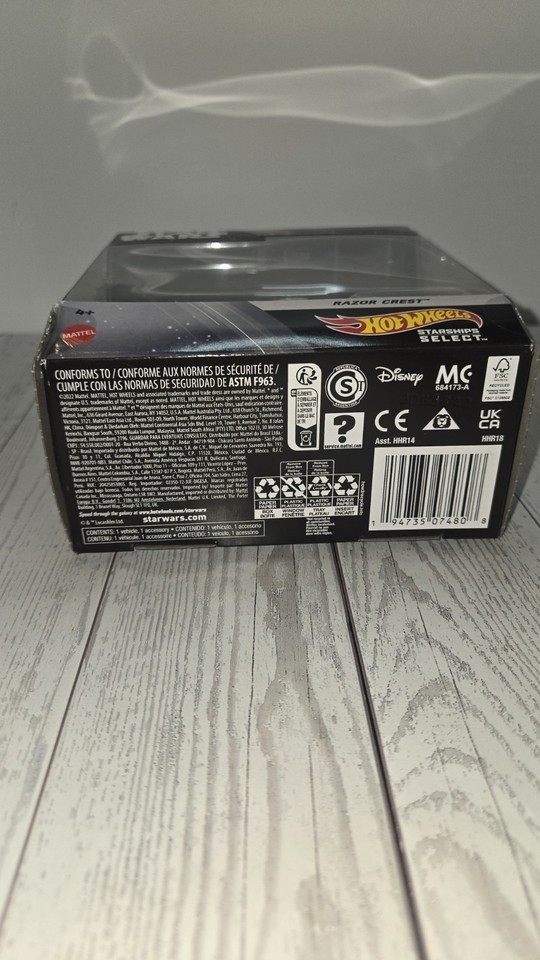 The 2023 Hot Wheels Star Wars Starships Select - Razor Crest #04 is a diecast model of the popular Starship from the Star Wars universe. This 1:50 scale vehicle features a multi-color design and comes with a stand for display. Recommended for children aged 4 years and up, this toy is part of the Hot Wheels Star Wars series and is sure to delight both boys and girls who are fans of the franchise. With its detailed design and high-quality construction, this Hot Wheels Razor Crest model is a must-have for any Star Wars collector or enthusiast.