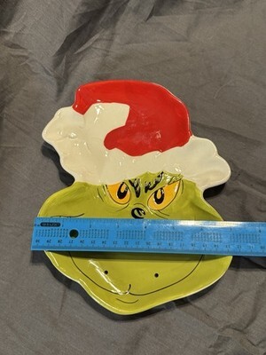 The 2024 Grinch Who Stole Christmas Face Shape Snack Plate by Dr Seuss Enterprises is a whimsical and festive addition to any holiday gathering or Dr. Seuss fan's collection. This ceramic plate features the iconic character of The Grinch from the classic animated TV special, complete with a colorful design that captures the essence of the beloved cartoon. With dimensions of 9 inches in height and 7 inches in width, it is the perfect size for serving holiday treats or displaying as a decorative piece during the festive season.
