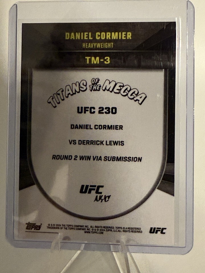The 2024 TOPPS UFC NYC Trading Card features Daniel Cormier in the Titans Of The Mecca Orange parallel variety. This limited edition card is numbered #3 out of 5 and is part of the 2024 UFC NY set by manufacturer Topps. The card belongs to the Sport category of Mixed Martial Arts (MMA) and the League category of Ultimate Fighting Championship (UFC).