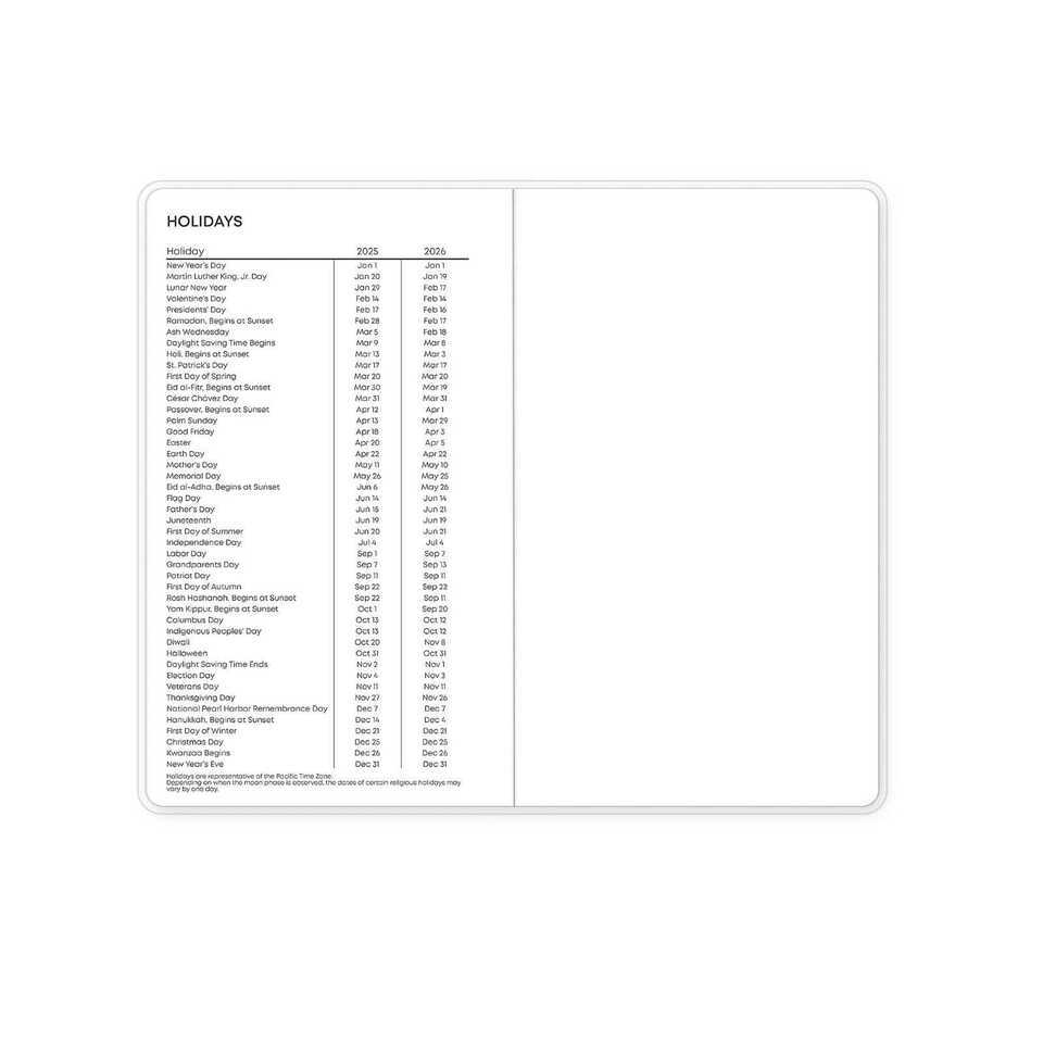 Organize your plans on the go with the 2025-2026 Blue Sky Monthly Planning Calendar. The 2-page monthly spreads offer plenty of space for writing down notes, and the stapled spine helps keep pages secure.