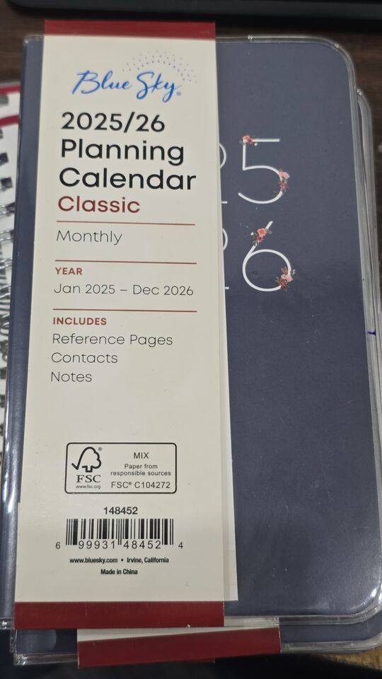 2025-2026 Blue Sky Ashlyn Navy 3.63" x 6.13" Monthly Planner, Plastic Cover
