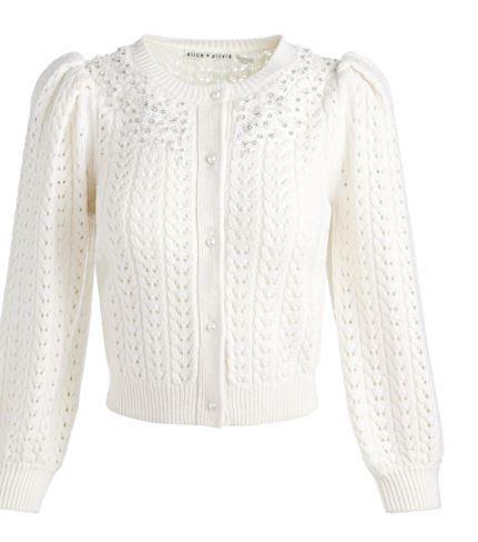 - 2025 NWT AUTHENTIC Alice + Olivia DORIS EMBELLISHED CARDIGAN in White $585 XS