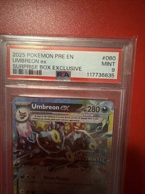 - 2025 Pokémon Pre En-Prismatic Evolutions Surprise Box Umbreon EX PSA 9 Mint