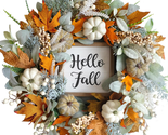 - 20Inch Thanksgiving Fall Wreath, Eucalyptus Berries Pumpkins Lamb Ears Leaves Au