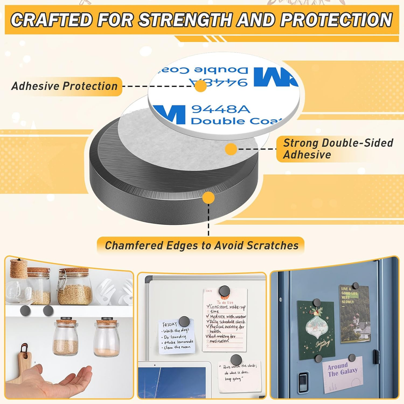 Effortless Installation: The magnets with adhesive backing enable tool-free application - simply peel and stick to any surface. Suitable for frequently rearranged spaces - easily switch layouts anytime without damaging surfaces.