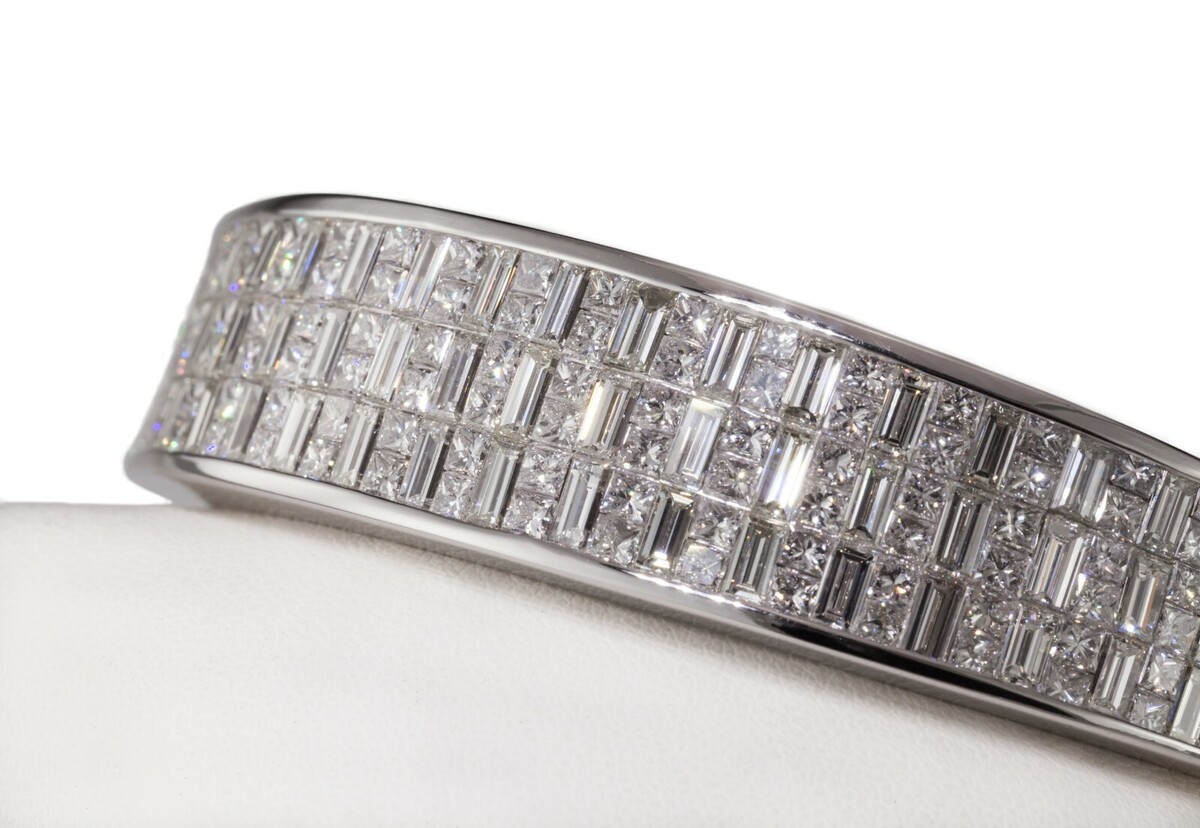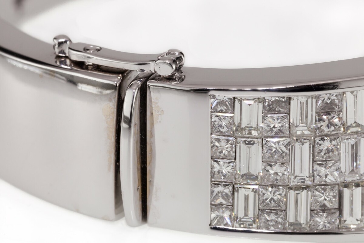 - 21.30 Karat Diamant Unsichtbar Set Armreif 18k Weiss Gold Armband 18.4cm