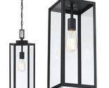 21.5 Inch Hanging Pendant Light Fixture for Porch Entrance This light can be installed in various locations, both indoors and outdoors. Featuring a minimalistic design in matte black, it boasts a durable metal and glass construction. The clear glass shade adds elegance and is easy to clean. It is built to withstand harsh weather conditions, ensuring long-lasting use. Brand: Faymart lighting. STICKER: 0006-70. Note: This item is an Amazon/Walmart customer remorse return. It has been inspected and may or may not have been repackaged.
