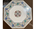 21" White Marble Coffee Table Top Lapis Lazuli Inlay Mosaic Marquetry Gift Decor