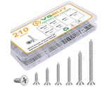 - 210Pcs Wood Screws Assortment Kit, 304 Stainless Steel, 6 Sizes, Phillips Drive
