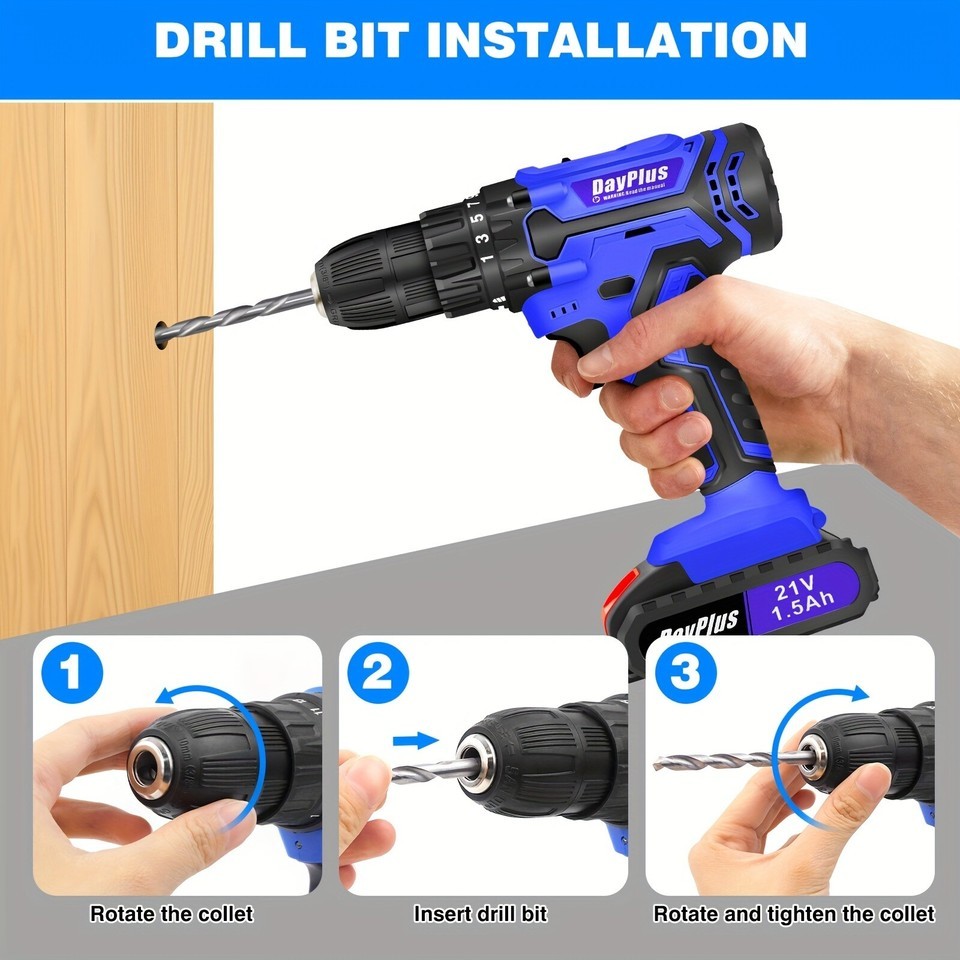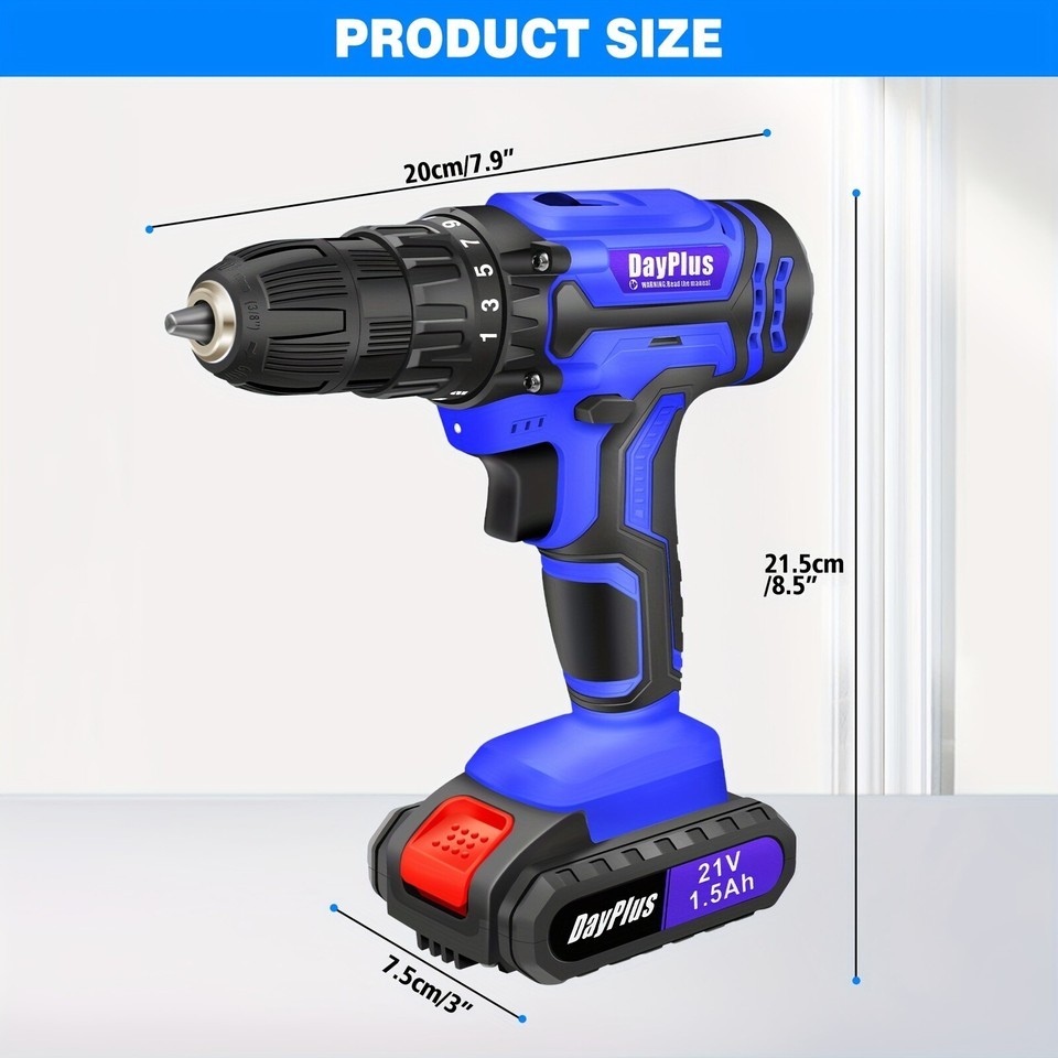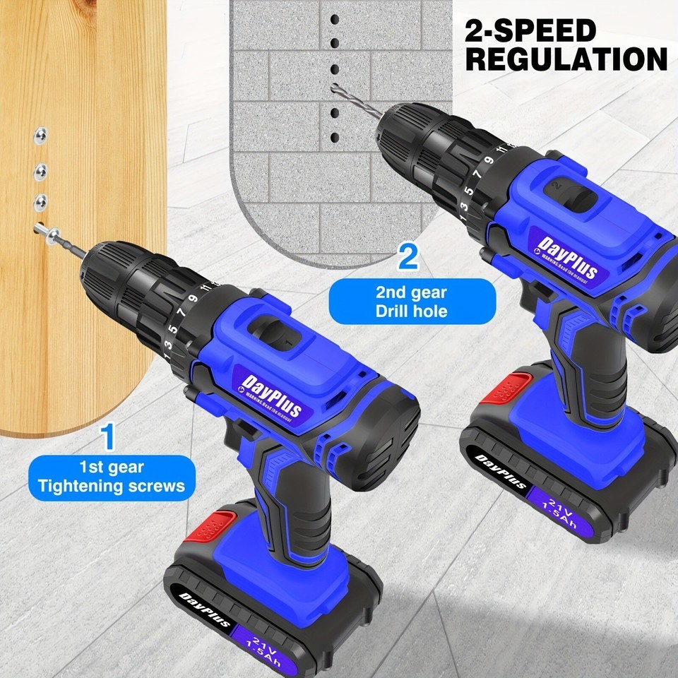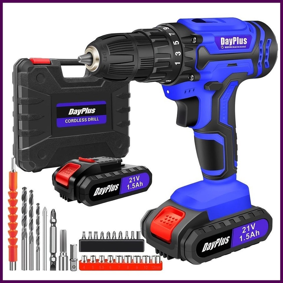 Get your home improvement jobs done with precision using the DayPlus 21V Cordless Drill Set. This compact yet powerful drill comes with 26 versatile accessories, making it the perfect all-in-one power tool for drilling, screwing, and DIY tasks around the house.