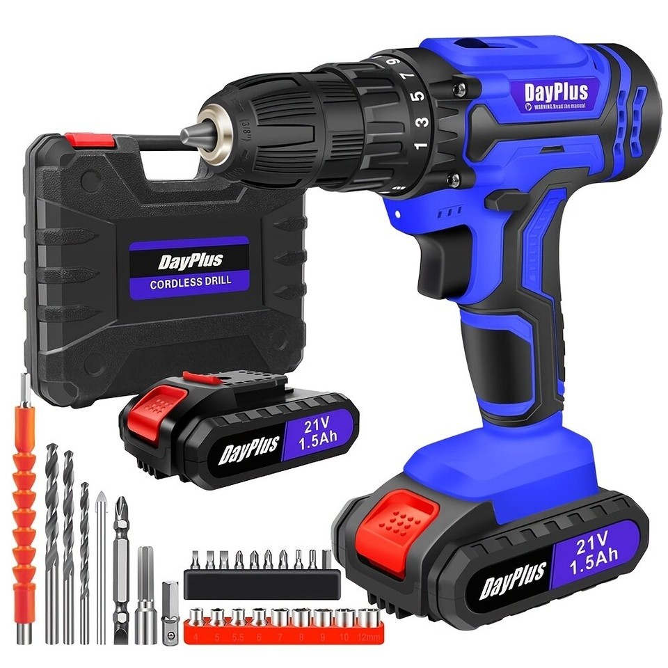 DayPlus 21V Cordless Electric Drill Set with 26 Accessories ? Powerful Rechargeable DIY Tool for Home Projects, Repairs, and More