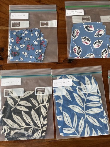 22 pieces of rayon fabric straight from the designer in the 1940s. There are Some leaf prints, cherries, tiny bows, florals stripes, and one 18 x 18 patchwork of the similar fabrics.These are all just sample sizes, 4 inches to a foot big. OK that one?s doneGreat to make a quilt top or just use for historical research. Might be able to make doll clothes even. Please ask Questions.