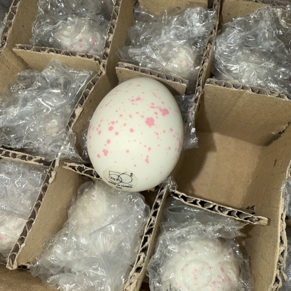 This product is a set of 22 vintage Department 56 porcelain Easter eggs from the 1980s. The eggs feature a splatter speckled design with dots in shades of white and pink, making them a beautiful addition to any Easter decor. Made in Taiwan ROC, these collectible eggs are perfect for adding a touch of nostalgic charm to your holiday celebrations.