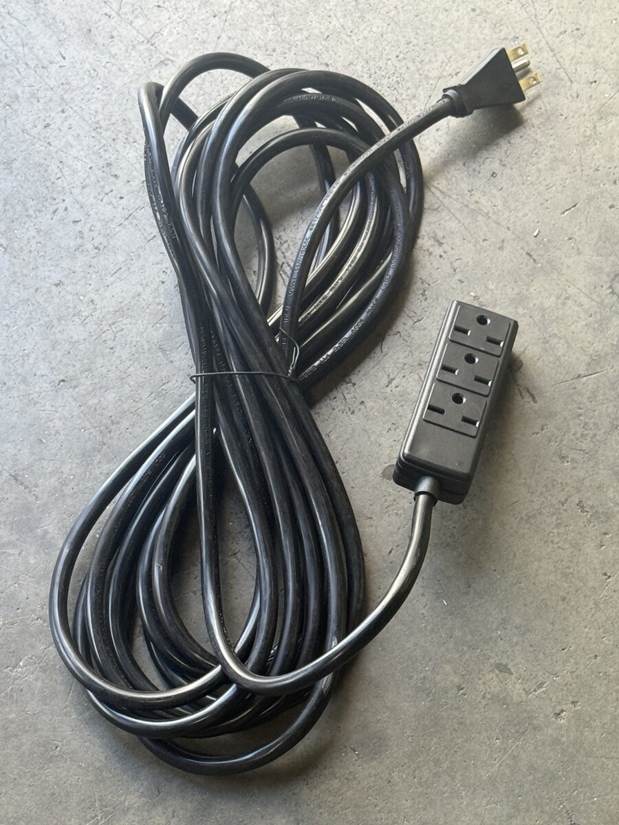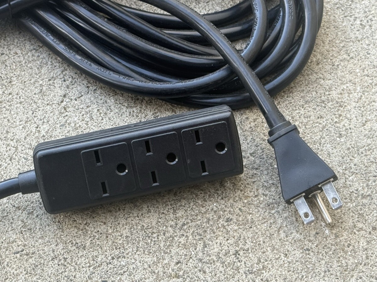 - 220V 240V AC Power Tri Tap 25' Extension Cord 3 outlet 14 AWG 15A Black