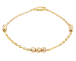 22ct Gold Baby Bracelet Seven Diamond Cut Beads Cable link Chain 5 Inches
