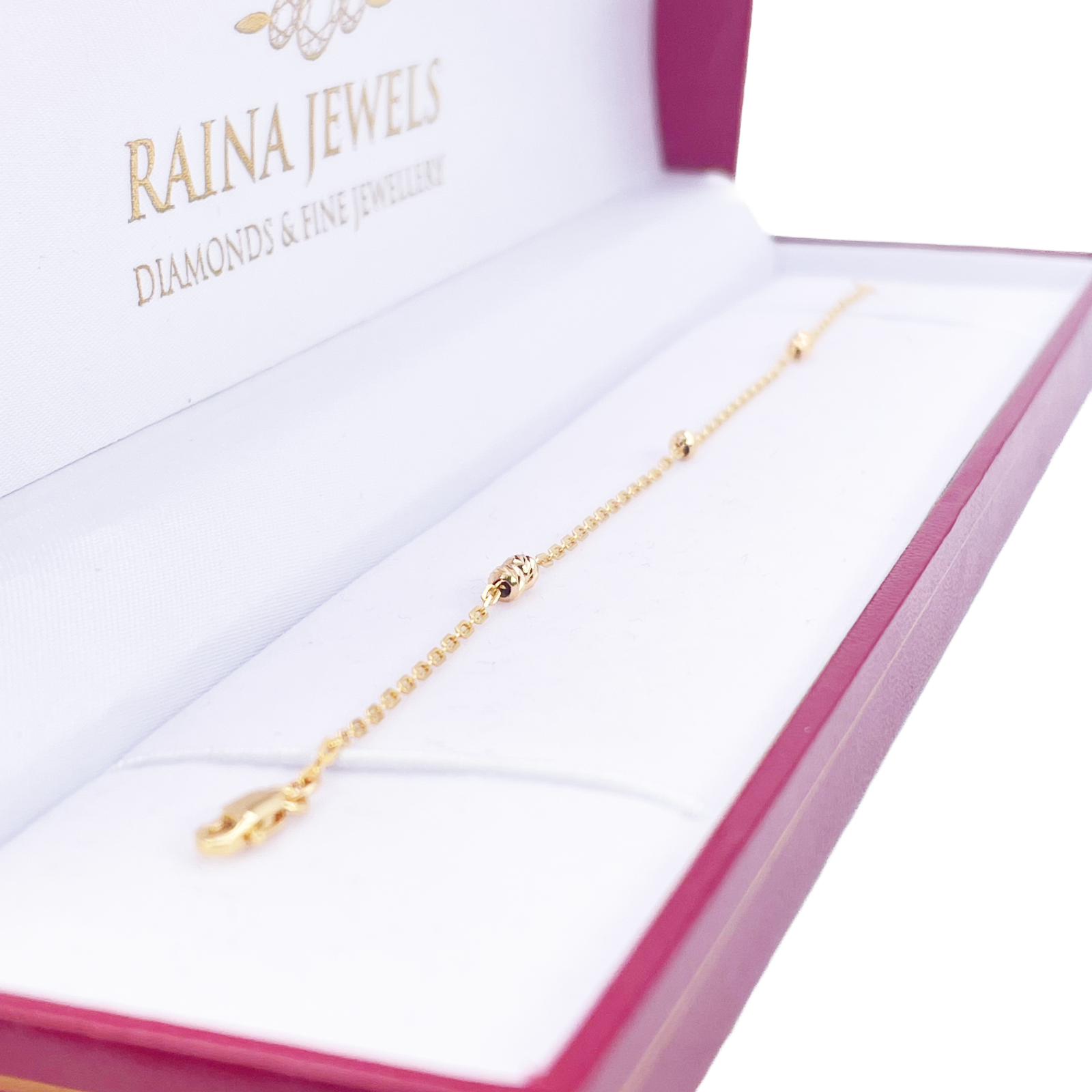 22ct Gold Beaded Bracelet Diamond Cut Cable Chain 7 Inches 2.8mm Width