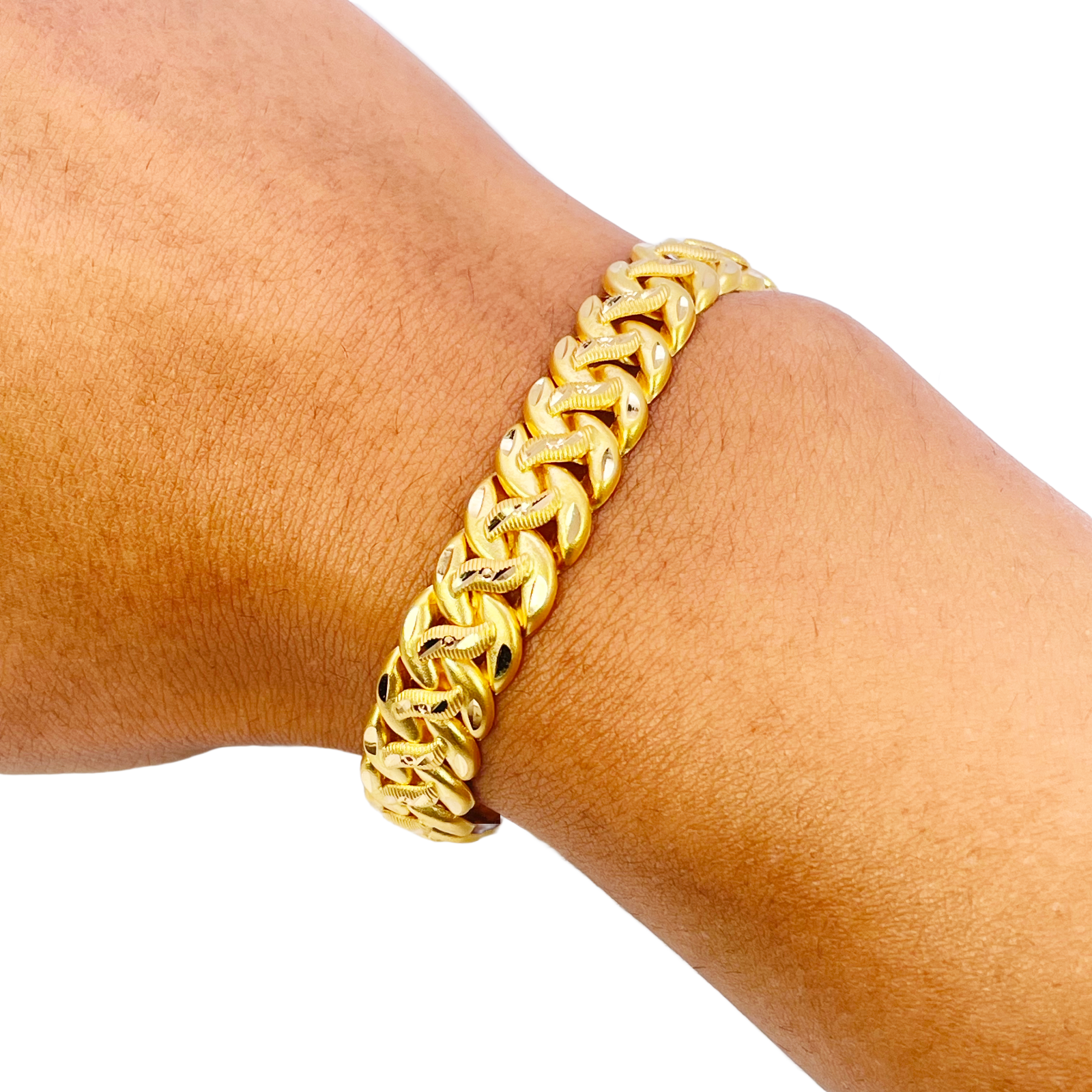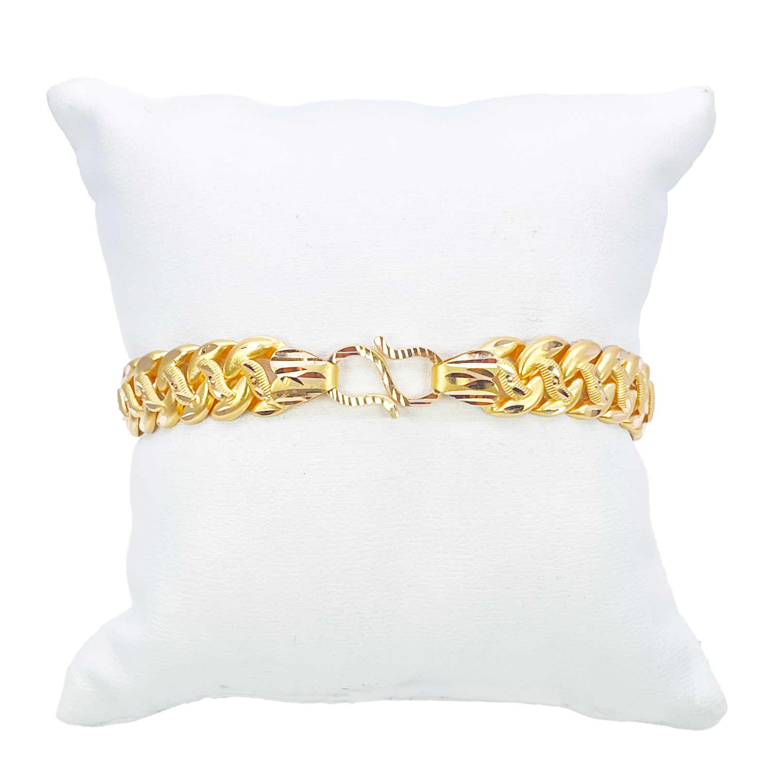 22ct Gold Curb Bracelet Matt Diamond Cut Lightweight 7.5 Inches 10mm Wide