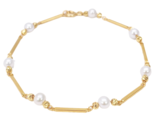 - 22ct Gold Pearl Bracelet Bar Link Seven Freshwater Pearls 7 Inches