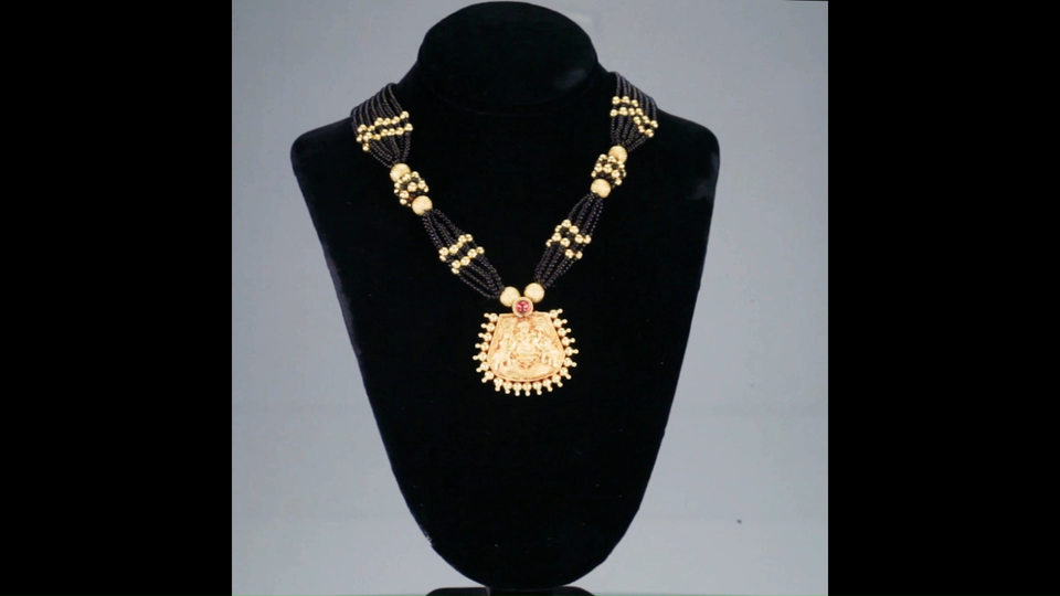 Gorgeous 22k KDM Yellow Gold Pendant w/ Gold and Black Bead Strands!