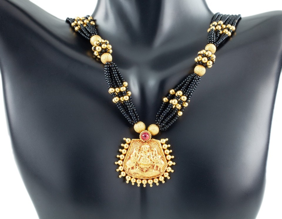 - 22k KDM Yellow Gold Pendant w/ gold and Black Bead Strands Necklace 20 inches