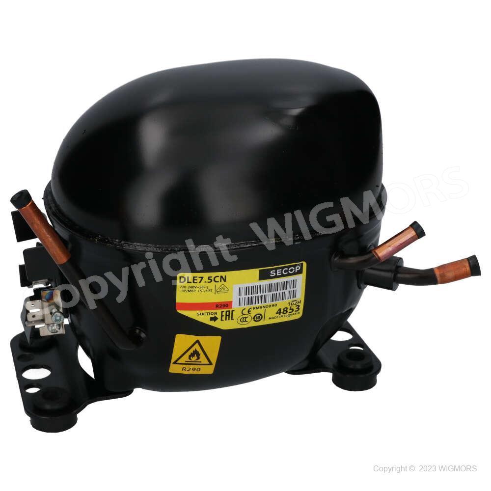On this listing we offer Brand New: 230V compressor Secop DLE7.5CN 102H4853 refrigeration R290 50Hz 1/3hp LBP MBP.