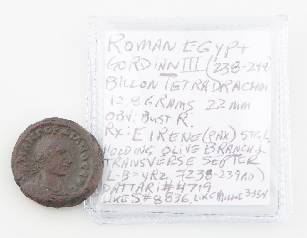 - 238-239 Roman Egypt Billon Tetradrachm Coin Avf Guardian III Eirene Pax D-471...