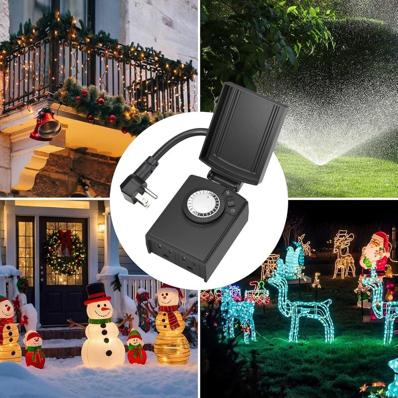 ?Dual outlets smart energy saving?:Two 3-prong grounded outlets and a 6-inch cord let the outdoor timer for lights control two devices at once?ideal for Christmas lights, patio lights, and decorations. Automated scheduling helps reduce energy waste and lower electricity costs