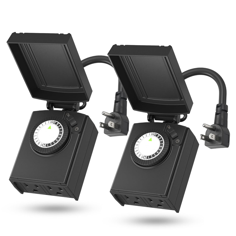 ?Easy Setup No Complex Programming?This outlet timer outdoor requires no complicated programming?simply adjust the pins to set ON and OFF times. As a timer for lights, it offers automatic control that saves time, effort, and energy.