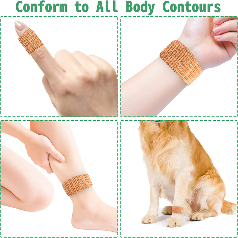 Mooerca Durable elastic material allows the bandage to be applied quickly and easily to almost any body part.Cohesive bandage wraps are easy to tear by hand without scissors or scissors. Simply tear and wrap wrists, fingers, ankles, back, knees, feet and other body parts with your hands; of bandages also for pets.