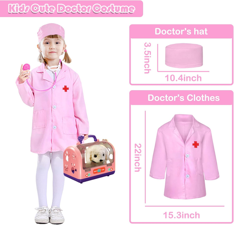 EDUCATIONAL VALUE: Designed for children ages 3-6, this toy develops children's imagination, empathy, nurturing skills, and understanding of animal care. Put on a doctor's uniform, put on a doctor's nameplate and grab medical tools to help kids simulate a real veterinary exam. Pretend play and role play will bring endless fun to children