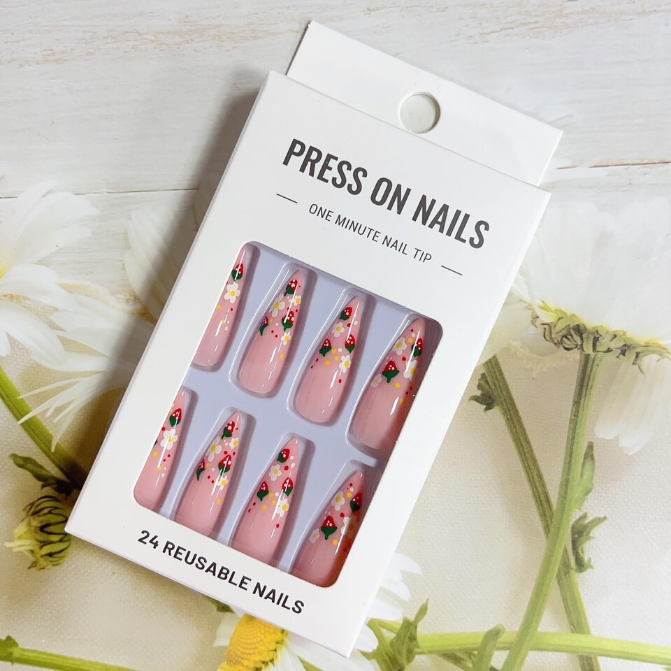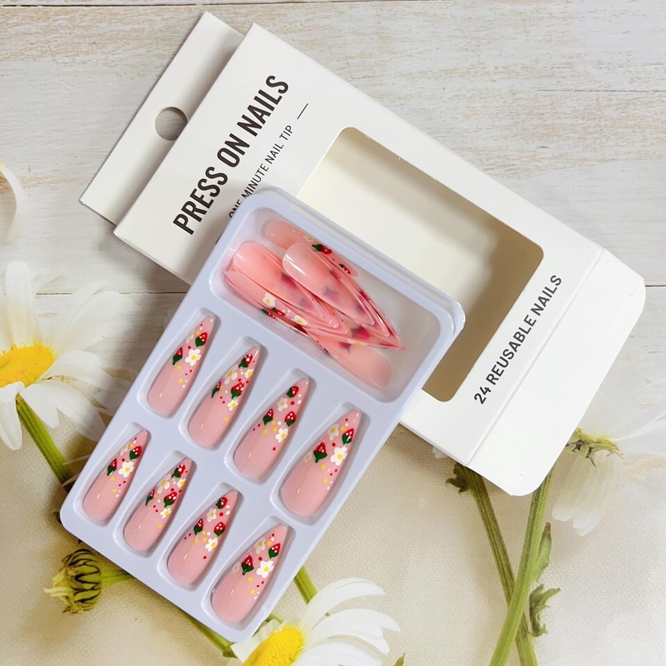 Package Containsyou will get 24pcs square press on nails with flower designs,1pc nail file, 24pcs nail jelly stickers and 1pc wooden stick for removing false nails tips. No need to buy other things, you can get the nail salon-like effect.