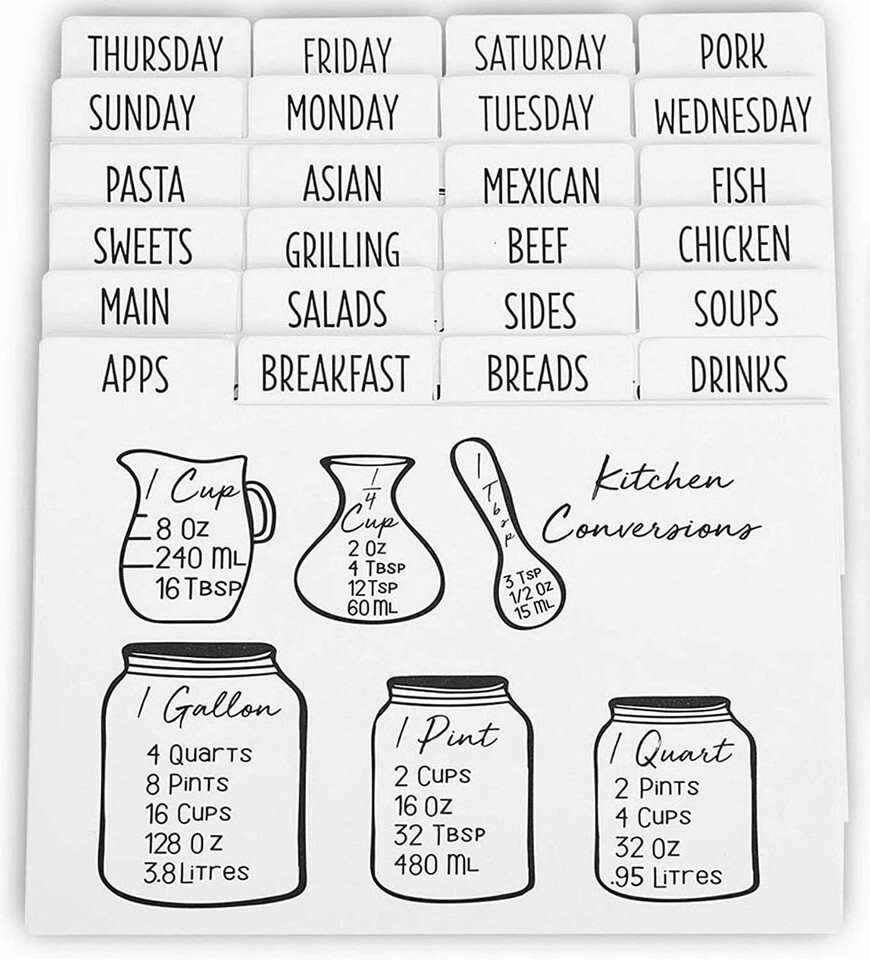 - 24 Set Recipe Card Dividers with Personalizable Tabs for Easy Organization